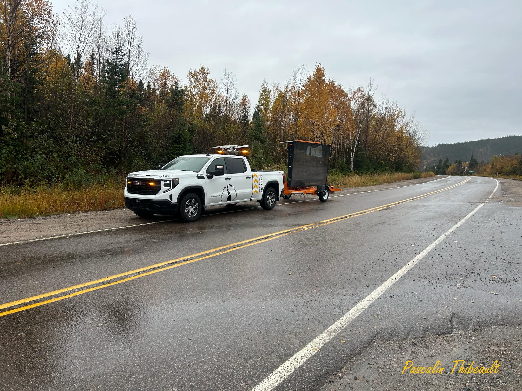 Panneaux à message variable (PMV) • Flèches remorques • Feux de chantier • Tours d'éclairage (alimenté par énergie solaire) • Barrières de signaleur • Panneaux (planter, sur base, sur tripode ou autre) • Poteaux carré ou en ''U'' • Glissières de sécurité en béton • Atténuateurs d'impact (TL-2 & TL-3) • Balises coniques (TRV-7) • Barricades (T-B-1, T-B-2) • Cônes en caoutchouc (28 po ou 18 po)
